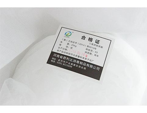 外观:白色粉剂;规格:25kg/袋;有效氯含量:≥90%; PH值(1%水溶液):2.0~3.0; 气味:有刺激性氯味;保质期:2年;